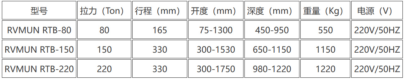 RVMUN RTB-200系列200T車載式液壓拉馬液壓拉拔器技術(shù)特點及技術(shù)參數(shù):